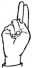 На ћирилици написано БУДИМИР ВИТКОВАЦ састоји се из 15 слова [?]. Исписано ћириличном једноручном азбуком за глувонеме: